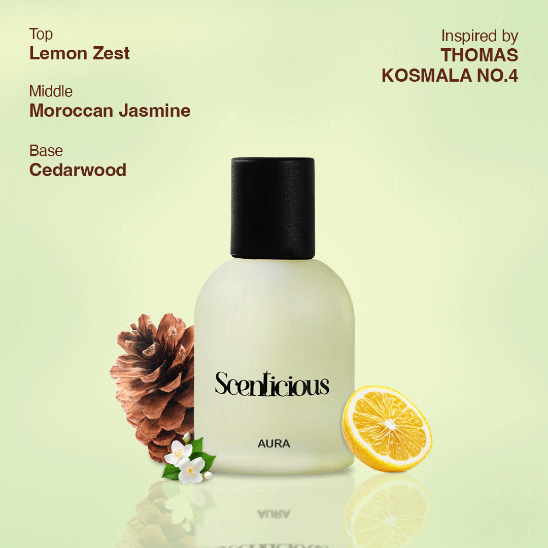 Inspired by the addictive freshness of Thomas Kosmala No.4, Aura is a modern, energizing, and effortlessly captivating fragrance that feels like a burst of clean air wrapped in warm sensuality. It opens with bright citrus, fresh spice, and airy florals, giving an immediate uplifting and sparkling vibe. The heart blends into smooth aromatic notes, soft musk, and a hint of sweetness, creating a balanced freshness that feels both elegant and contemporary. As it settles, the base melts into warm amber, creamy musk, and subtle woody tones, leaving a long-lasting, skin-like, seductive trail. A perfect choice for those who love fresh, warm, and uniquely magnetic scents. ✨🤍🔥
