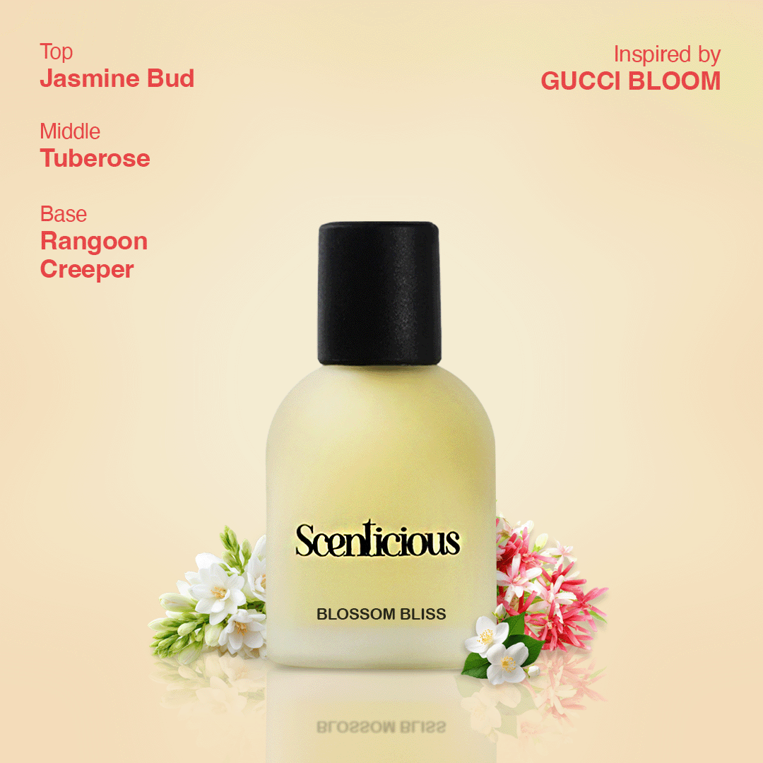 Inspired by the lush elegance of Gucci Bloom, Blossom Bliss is a rich, floral, and exquisitely feminine fragrance that celebrates the beauty of blooming flowers. It opens with jasmine, tuberose, and natural white florals, creating an immediate sense of freshness and vitality. The heart reveals rangoon creeper, lily, and delicate petals, blending into a harmonious and luxurious core that feels soft, romantic, and timeless. As it settles, the base unfolds into creamy woods, soft musk, and subtle green notes, leaving a long-lasting, elegant, and enchanting trail. Perfect for those who love fresh, floral, and sophisticated scents. πΈβ¨π