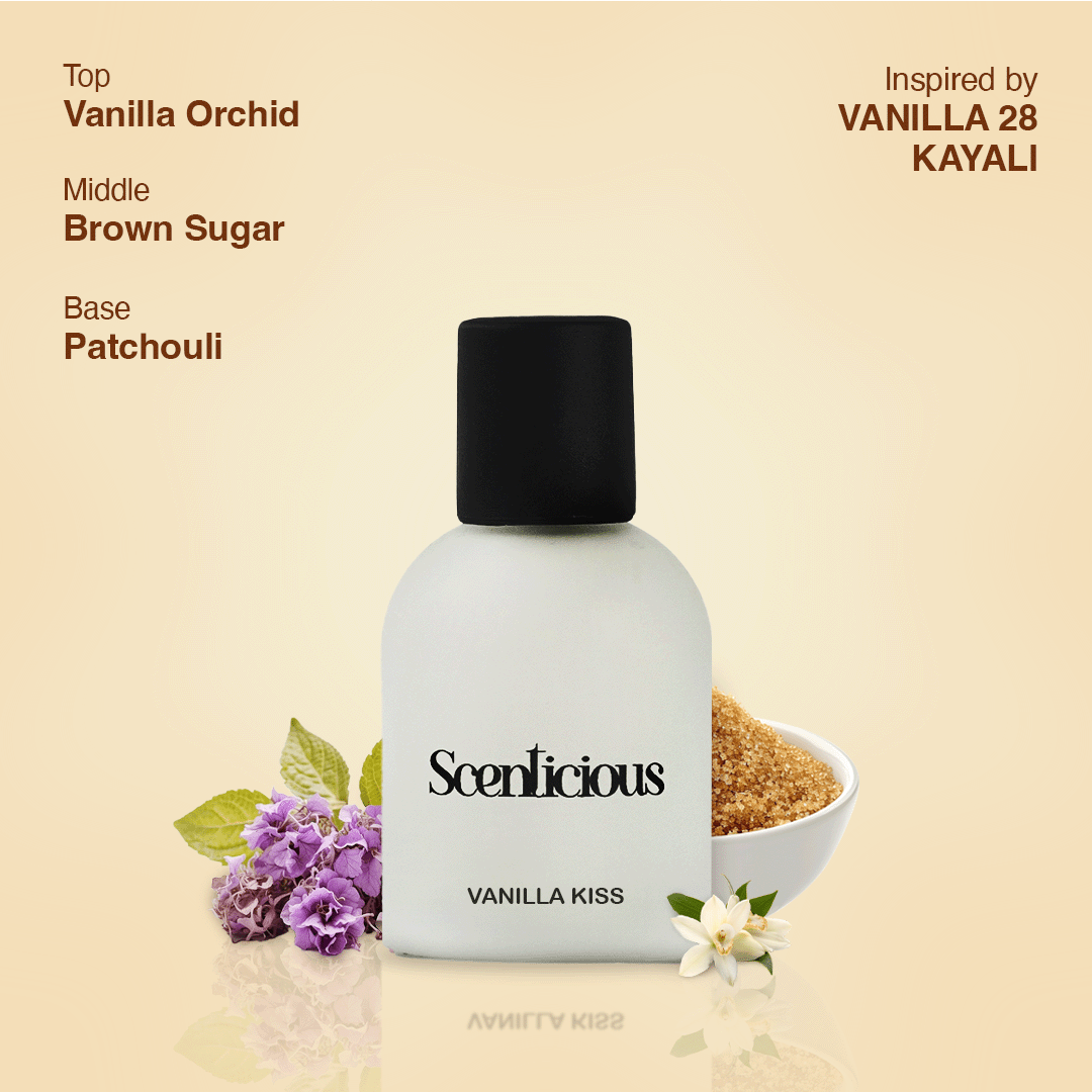Inspired by the cozy elegance of Vanilla 28 by Kayali, Vanilla Kiss is a warm, sweet, and irresistibly soft fragrance that feels like a gentle embrace of creamy vanilla. It opens with rich vanilla, subtle caramel, and a hint of sweet almond, creating an instantly comforting and inviting aroma. The heart reveals soft white florals, warm spices, and delicate musk, blending into a smooth, luxurious, and sensual core. As it settles, the base unfolds into amber, soft woods, and velvety gourmand notes, leaving a long-lasting, warm, and intimate trail that feels elegant, cozy, and utterly irresistible. Perfect for those who love sweet, warm, and comforting scents. 🤍✨🍮